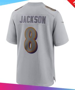 Men's Baltimore Ravens Lamar Jackson Nike Gray Atmosphere Fashion Game Jersey details