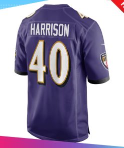 Men's Baltimore Ravens Malik Harrison Nike Purple Game Jersey details