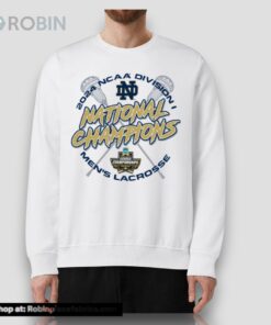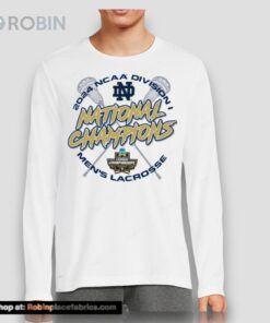 Celebrate the victory of the Notre Dame Fighting Irish in the 2024 NCAA Men's Lacrosse National Championship with this exclusive locker room shirt. Show off your team pride in style with this high-quality, officially licensed apparel. Perfect for any die-hard fan looking to commemorate this historic win, this shirt is a must-have addition to any collection. Don't miss your chance to own a piece of history and cheer on the Fighting Irish in style!