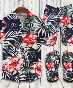 Mercedes Flip Flops And Casual Button Down Hawaiian Shirt and Beach Shorts