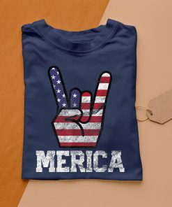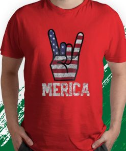 Merica Rock Sign 4th of July Vintage American Flag T-Shirt, Hoodie, Sweatshirt images