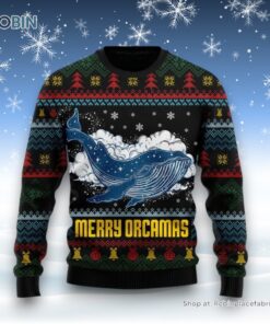 Merry Christmas Orcas Killer Whale Ugly Christmas Sweater and Sweatshirt details
