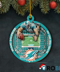 Miami Dolphins Football Mascot 2 Layered Wood Christmas Ornament