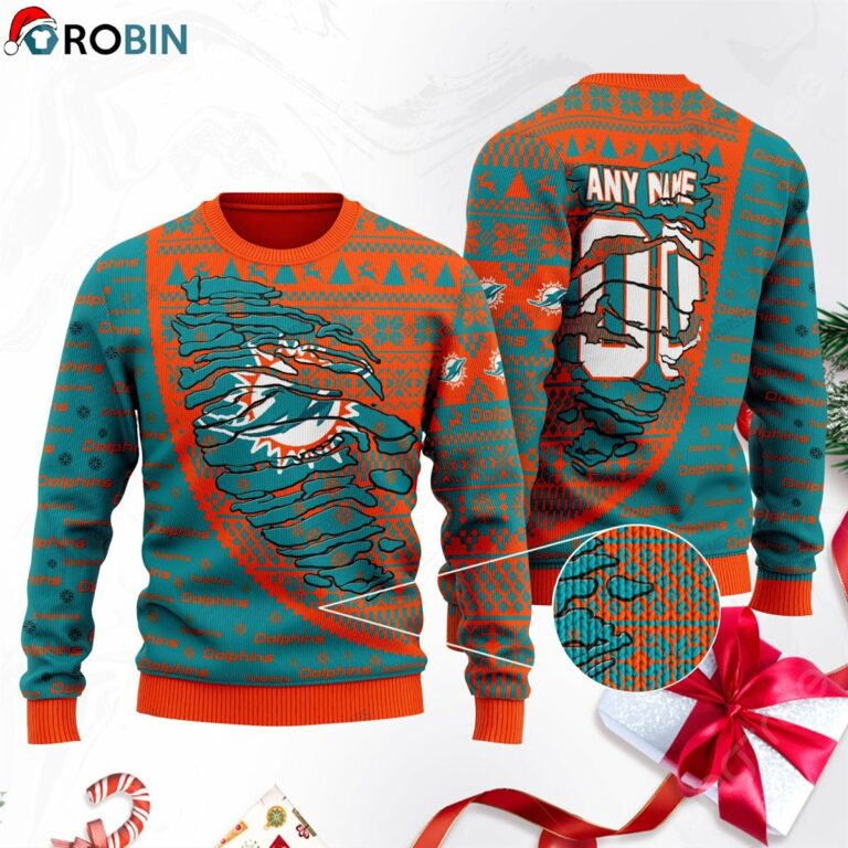 It’s time to rock a holiday season favorite – the Ugly Christmas Sweater party. Looking for a unique christmas sweatshirt – sweater ? Check out Miami Dolphins Football Ugly Christmas Sweater, Sweatshirt SWT147 at Robinplacefabrics. This shirt constructed from a premium polyester blend that is ultra-soft and incredibly comfortable.