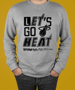 Miami Heat White Hot Let’s Go Heat 2022 Playoffs Shirt are super versatile and worn by many different people for many different purposes. Our’s top styles like the T-shirt, hoodie, sweatshirt are popular for recreational sports teams and club uniforms, businesses wanting to create promotional items, and apparel decoration !.