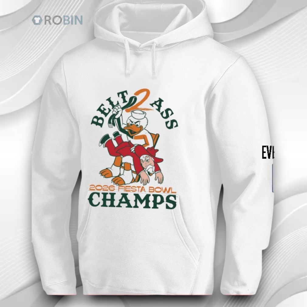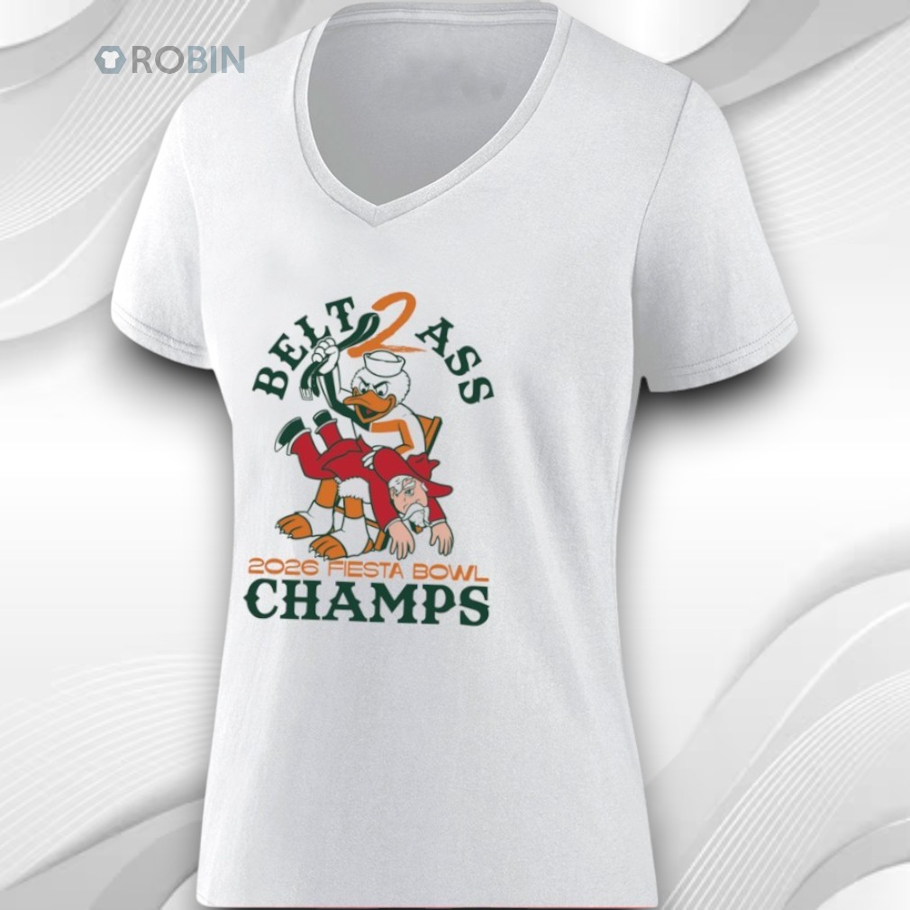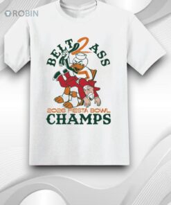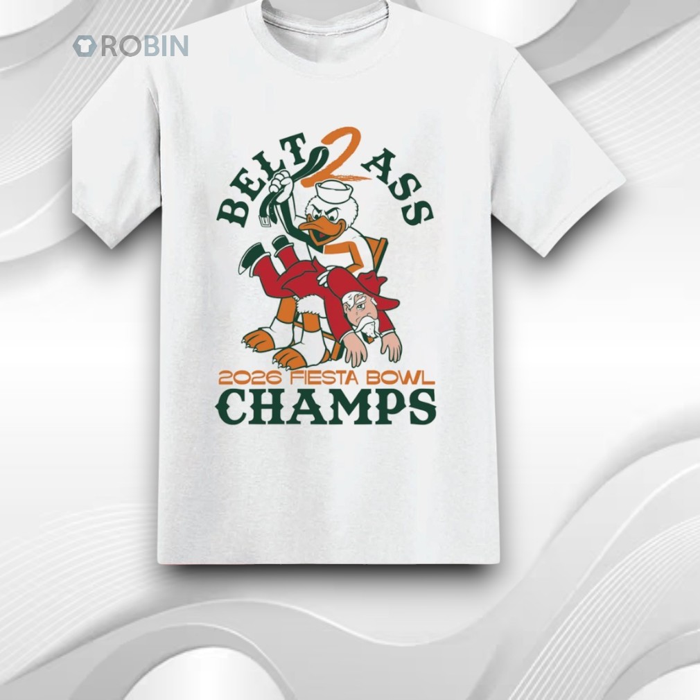 Celebrate victory with humor, attitude, and Miami pride in the Belt 2 Ass – 2026 Fiesta Bowl Champs Graphic Shirt. This bold, cartoon-style design brings championship energy to life with a playful, high-impact illustration that captures the dominance and swagger of a title-winning team.