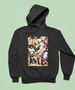 There’s a certain electricity to a crowd roaring in unison after a touchdown, the kind of energy that turns a football field into a canvas of raw emotion. This Miami Hurricanes shirt captures that exact moment with a dynamic illustration that places both players and fans center stage. The composition balances action and atmosphere—the players’ triumphant gestures are met by the fervent crowd behind them, their animated forms suggesting motion and passion. Vibrant hues in classic Miami green and orange pop against a darker backdrop, creating a striking contrast that immediately draws the eye. It’s not just about bold colors; the design layers detail thoughtfully, making the scene feel alive without overwhelming complexity. The absence of typography keeps the focus firmly on the movement and emotion, letting the illustration tell the story on its own terms. For anyone who lives and breathes Hurricanes football, this shirt is a quiet declaration of belonging—an expression of that shared pride and the highs that come with game day. It’s the kind of piece that resonates beyond the stadium, suitable for casual wear or spirited gatherings with fellow fans. Whether worn to a tailgate or while watching the game from the couch, it embodies more than fandom; it channels a collective moment frozen in time, worn with genuine enthusiasm.