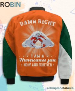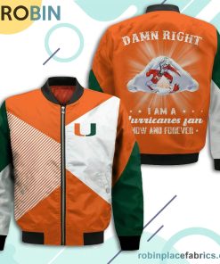 Miami Hurricanes Damn Right I Am Hurricanes Fan Now And Forever Bomber Jacket