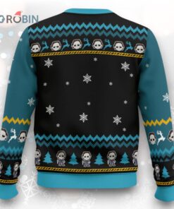 Swap the traditional holiday cheer for a spine-chilling twist with this sweater’s eerie design. Imagine Michael Myers making a surprise appearance at your festive gathering, adding a dash of horror to your holiday fun. Snowflakes dance around his iconic image, creating a quirky blend of fright and delight. Want to stand out at your next holiday party? This sweater is your perfect conversation starter. Grab yours now!