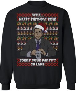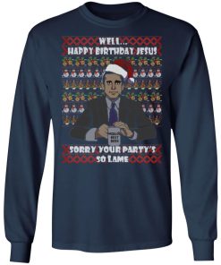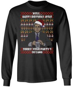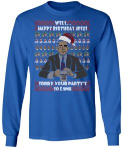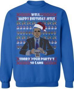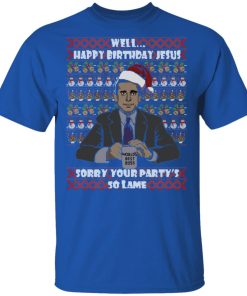Michael Scott Well Happy Birthday Jesus Sorry Your Party’s So Lame Ugly t shirt, sweatshirt. Available in t shirt, long sleeve, tank top, hoodie, sweatshirt and multiple color. If you want in another color please contact us.
