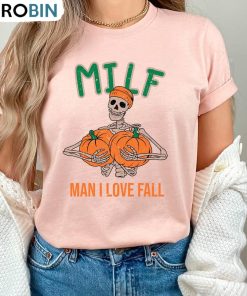 Milf Man I Love Fall Funny Shirt, Skeleton Halloween Tee Tops Short Sleeve details