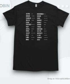 Unleash your inner aviator with our unique alphabet tee, inspired by the iconic phonetic language used by pilots and military personnel worldwide. This shirt seamlessly blends style and functionality, offering a trendy nod to the history of communication. Whether you're an aviation enthusiast or simply someone who appreciates distinctive design, this garment promises to be a conversation starter. With its sleek graphics and comfortable fit, it's perfect for casual outings or cozy nights in. Embrace the alphabet that transcends boundaries and communicates with clarity and flair.