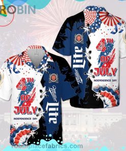 Miller Lite 4th Of July Independence Day Short Sleeve Button Down Hawaiian Shirt images