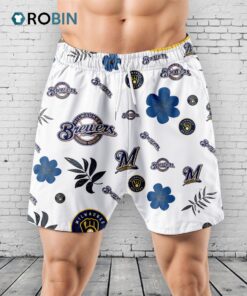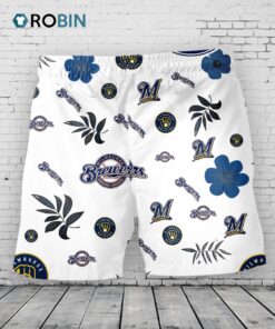 Show your Brewers pride in style! These tropical shorts are perfect for summer. Rock the Milwaukee Brewers colors with a fun, beachy vibe. Get yours today and turn heads! ☀️🌴