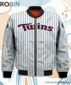 Minnesota Twins MLB Uniform Stripes Custom Name Number Leather Bomber Jacket imamges