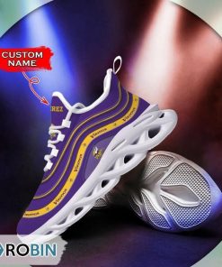 The Minnesota Vikings NFL Personalized Max Soul Shoes are a unique way to show your commitment to the Minnesota Vikings. These custom shoes feature the famous V on the back and can be personalized with your name and number on the ankle. The lightweight, air-mesh upper is breathable for long-term comfort, and the durable non-marking outsole ensures skid resistance and stability. Whether cheering on the team in the stands or on the streets, these custom shoes offer an unbeatable combination of style and team loyalty.