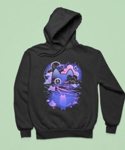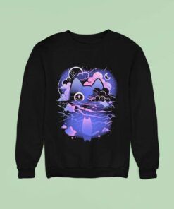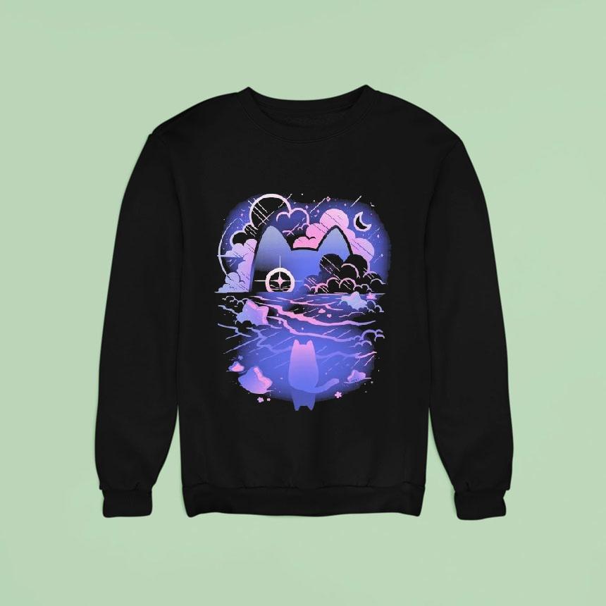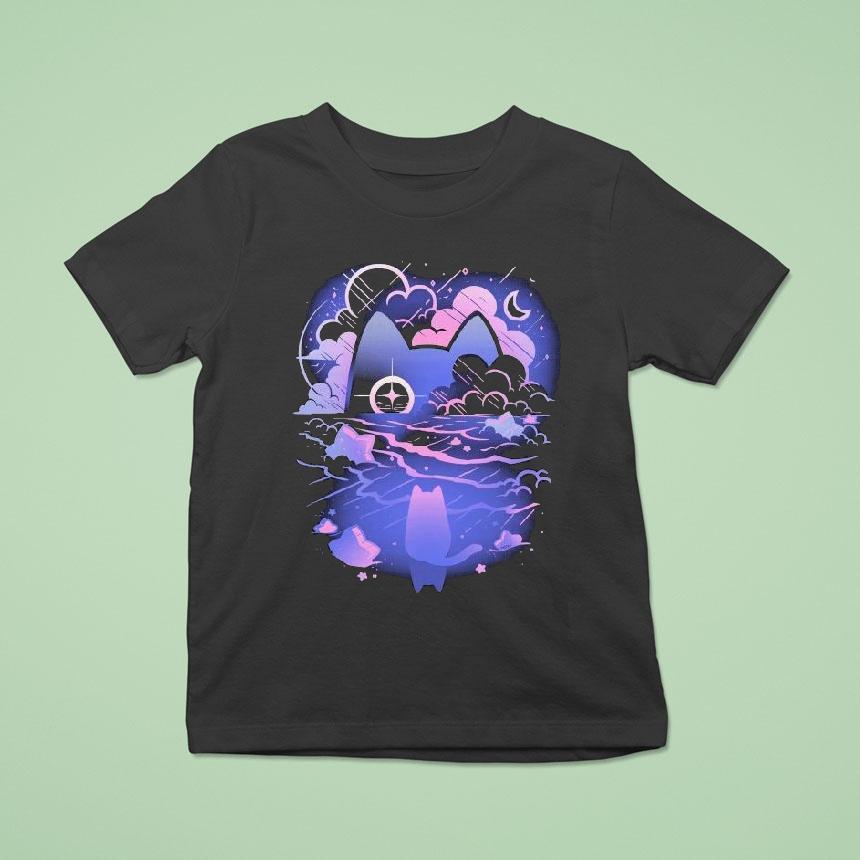 Under a sky where stars blur into vivid neon streaks, a lone figure stands at the water's edge, framed by softly rolling mountains and swirling waves. The colors melt from deep purples into pinks and blues, reflecting a dreamscape that feels both retro-futuristic and quietly psychedelic. Clouds drift lazily above, while the moon’s glow adds a gentle luminescence to the scene, grounding the surreal in a moment of tranquil stillness. This shirt captures that mystical mood in every thread, offering a wearable portal to a place where imagination stretches wide. The graphic doesn’t scream for attention but invites the viewer to linger, to get pulled into that liminal space between wakefulness and dreams. It’s a design that resonates with those who appreciate art and anime, those who find themselves drawn to worlds beyond the ordinary, combining nostalgia with a hint of futuristic wonder. Layer it under a casual jacket or pair with worn-in jeans for days when creativity feels just within reach. Ideal for anyone who thrives in creative circles or loves gathering with friends who share an appreciation for striking, imaginative visuals, it’s a subtle yet meaningful way to express identity. Whether gifted to a thoughtful friend or chosen as a personal token for those quiet, inspired moments, this neon dreamscape shirt feels like the kind of piece that sparks conversation and reflection in equal measure.
