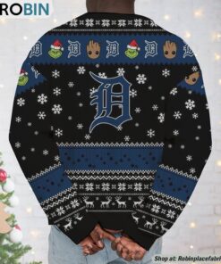 Embrace the holiday spirit with this uniquely charming and festive sweatshirt! Combining the lovable mischief of Baby Groot and the Grinch, this cozy and stylish piece showcases your Detroit Tigers pride in a delightful, eye-catching design. Perfect for holiday parties, family gatherings, or simply staying warm on a cold winter’s night, this sweater is sure to bring smiles and start conversations. Celebrate the season with a playful twist, and let your inner fan shine brightly!