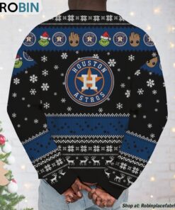 Get into the festive spirit while showcasing your team pride with a dash of whimsical charm! Picture the mischievous Grinch teaming up with Baby Groot, and together they're spreading holiday cheer—Houston Astros style. This cozy, eye-catching sweatshirt and sweater combination isn't just about comfort; it's a conversation starter, a statement piece, and the ultimate fan gear for the holiday season. Perfect for yourself or as a unique gift, it's sure to bring joy and laughter to any Astros fan's winter wardrobe.