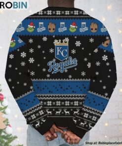 Transform your holiday wardrobe with a whimsical touch that brings both sports and fun together! Dive into the festive spirit with a unique sweater that pairs the charm of everyone's favorite tiny tree creature with the iconic green grump. Perfect for Kansas City Royals fans who love mixing a bit of pop culture into their seasonal style, this delightful piece is a must-have. Celebrate your passion for baseball and the holidays with a cheerful twist that promises to spread smiles and holiday cheer wherever you go.