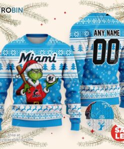 Get ready to celebrate the holiday season in style with a unique twist on festive wear! Imagine combining your love for the Miami Marlins with the whimsical charm of the Grinch, all wrapped up in one eye-catching Christmas sweater. Perfect for holiday parties, family gatherings, or cozying up on Christmas morning, this design blends seasonal cheer with your team spirit. It's not just clothing; it's a conversation starter, a statement piece, and a way to showcase your holiday merriment and baseball passion all at once. Embrace the holiday spirit while standing out in the crowd with this playful and spirited addition to your festive wardrobe.