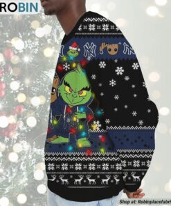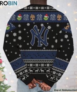 Step into the festive spirit with a delightfully quirky twist that celebrates beloved pop culture icons and timeless sports allegiance. This unique holiday sweater captures the magical camaraderie of two unlikely yet lovable characters, perfect for turning heads at any gathering. Embrace the whimsical fusion of Baby Groot's endearing charm and the Grinch's iconic mischief, all done in spirited New York Yankees fashion. The ideal gift for fans who cherish heartwarming friendships and seek to showcase their team loyalty in a fun, imaginative style! Celebrate the season with humor and warmth while making a bold statement in this must-have holiday apparel.