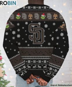Step into the festive season with an exclusive wardrobe delight that combines pop culture whimsy with holiday charm! Our unique apparel piece showcases the beloved Baby Groot and the famously mischievous Grinch, embodying the true spirit of fun and friendship. This eye-catching sweater isn't just about celebrating your favorite baseball team, it's a statement of individuality and fandom. Embrace the cheerful chaos of Christmas with a sweater that promises warmth, laughter, and a sprinkle of sports enthusiasm, making every gathering a delightful event. Whether gifting to a loved one or adding to your own holiday collection, this sweater ensures you merrily stand out amidst a sea of ordinary attire.