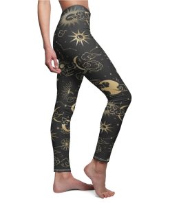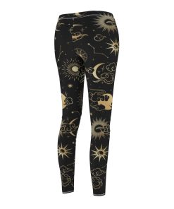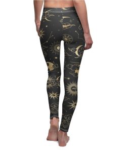 Moon Stars Leggings for Women, Black Gold Printed High Waisted Tights