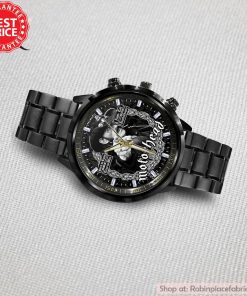 This sleek and stylish black stainless steel watch pays tribute to the legendary rock band Motorhead with its bold and edgy design. The watch features a sturdy stainless steel band and a striking black face, adorned with the band’s iconic logo. With its durable construction and eye-catching design, this timepiece is sure to make a statement and is the perfect accessory for any Motorhead fan. The watch is also water-resistant, making it suitable for everyday wear. Its timeless design ensures that it will remain a cherished piece in any fan’s collection for years to come.