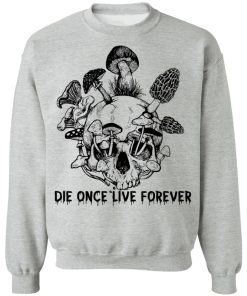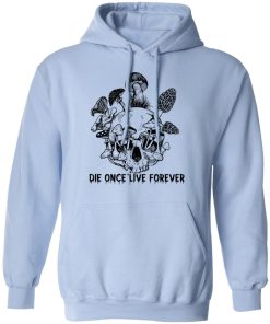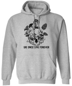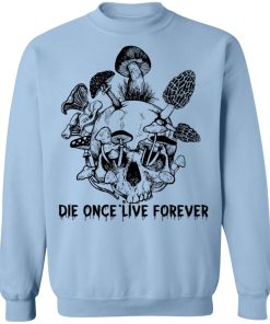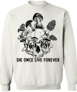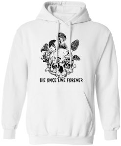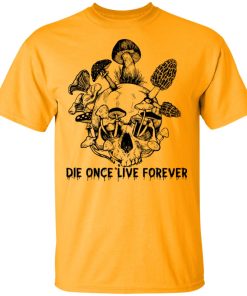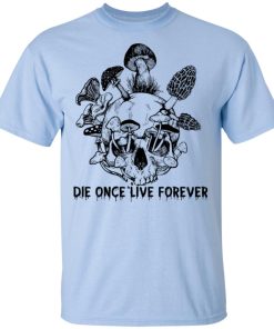 Mushroom skull Die once live forever shirt. Buy it now, from $19.99 and $3.99 shipping. This shirt available in t shirt, sweatshirt, hoodie and multiple color.