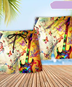Music Guitar Love Butterfly Beach Short, Gift for Holiday Summer