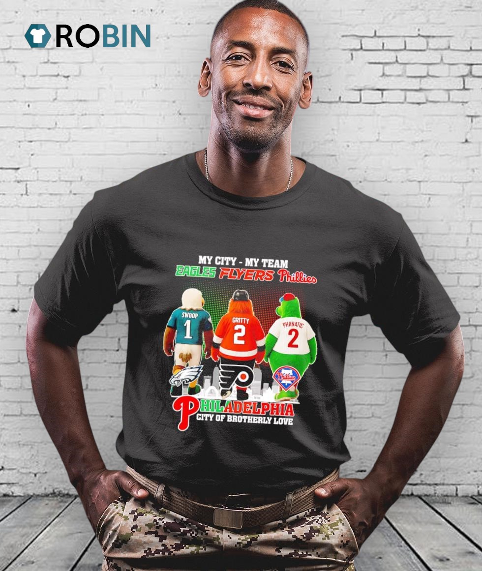 My City My Team Eagles Flyers Phillies Philadelphia City Of Brotherly Love Mascot Shirt