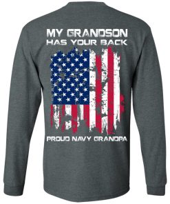 My grandson has your back pround navy grandpa t shirt, long sleeve, hoodie, tank available