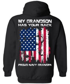My grandson has your back pround navy grandpa t shirt, long sleeve, hoodie