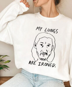 Sometimes, you want to wear something that sparks a smile or a double-take without trying too hard. This shirt nails that vibe with its clever blend of humor and style. The design is minimalist, but it doesn’t hold back—it features a hand-drawn line art portrait that’s both simple and striking. Above it, the bold, handwritten phrase MY LUNGS ARE IRONED commands attention in a casual, slightly uneven scrawl that feels like an inside joke shared among friends. It’s the kind of tee that pairs effortlessly with anything from well-worn jeans and sneakers to a casual jacket or flannel. Nothing too flashy, just cool enough to express a bit of edge and wit. Layer it up for a relaxed day out or keep it front and center on warmer afternoons. It’s comfortable, unisex, and versatile—ideal for those who appreciate apparel that doesn’t take itself too seriously but still feels thoughtfully put together. This shirt is perfect for anyone who thrives on clever irony and isn't afraid to embrace their quirky side. Think of it as a gift for a colleague who loves sarcastic humor or a friend who’s always ready with a witty comeback. If you’ve ever found yourself muttering nonsensical phrases that somehow sum up your mood, this my lungs are ironed shirt might just be the next addition to your casual wardrobe—lighthearted, just the right amount of offbeat, and undeniably memorable.