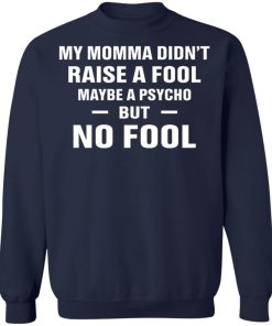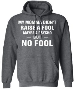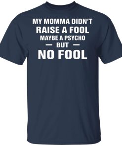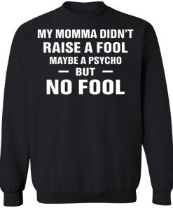 My Momma Didn’t Raise A Fool Maybe A Psycho But Fool Shirt. Available in t shirt, long sleeve, tank top, hoodie, sweatshirt and multiple color. If you want in another color please contact us. Quality control before delivery. Print: Digital printing, colors won’t fade or peel. The design is printed with new age printing technology. It is printed with a water – soluble and eco – friendly ink. Treat yourself, or make this shirt the perfect gift n birthdays, anniversaries, holidays, or give a gift to friend, yourself, or family, or for no reason at all.