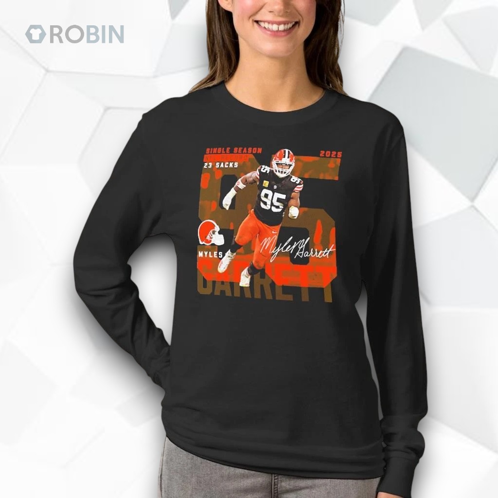 Celebrate an unforgettable defensive season with this Myles Garrett hoodie, inspired by a historic single-season performance featuring 23 sacks. Designed for true football fans, this hoodie captures the power, intensity, and dominance of one of the league’s most feared defenders.