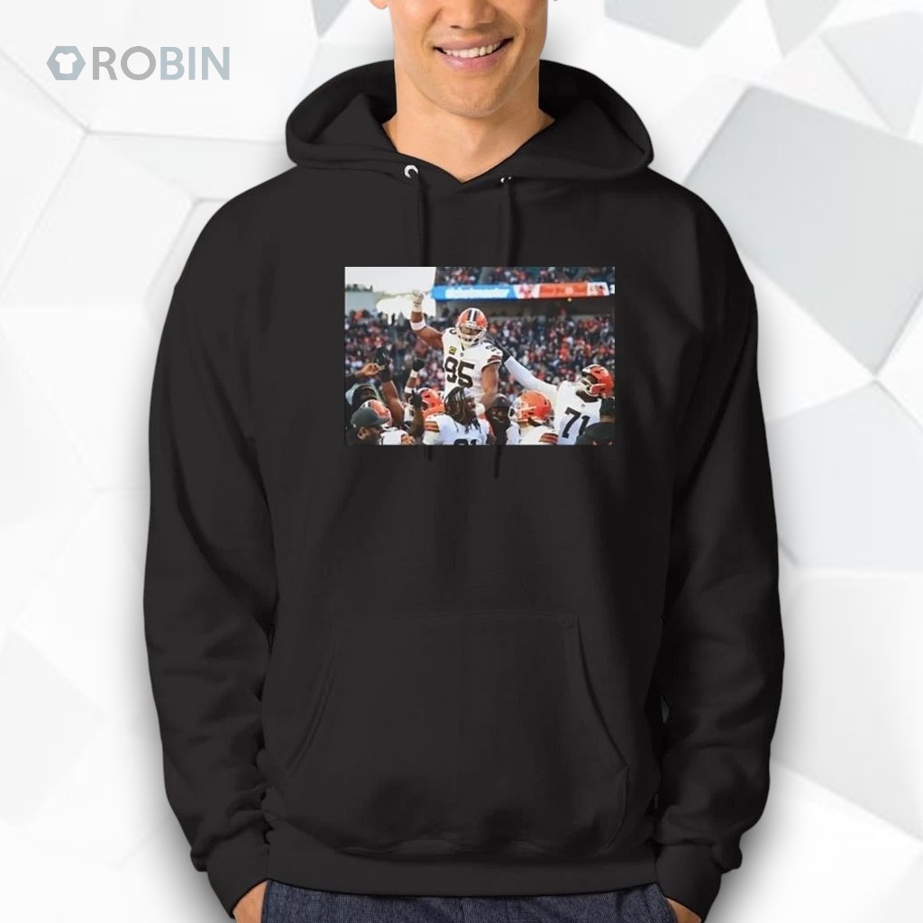 Capture a powerful on-field moment with this football celebration hoodie, featuring an iconic image of a dominant defender being lifted by his teammates after a game-changing performance. This design represents strength, leadership, and the ultimate reward of hard-fought victory.