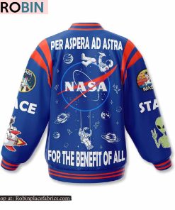 The Nasa Per Aspera Ad Astra For The Benefit Of All Baseball Jacket is a stylish and unique outerwear option that captures the spirit of exploration and discovery. Crafted with high-quality materials and attention to detail, this jacket not only provides warmth and comfort but also showcases a sense of adventure and inspiration. With its NASA-inspired design elements, it pays homage to the limitless potential of human achievement in the pursuit of knowledge and progress. Perfect for any space enthusiast or fashion-forward individual, this jacket is a statement piece that embodies the ingenuity and creativity of space exploration.
