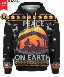 Nativity Jesus Peace On Earth 3D Ugly Christmas Sweater Hoodie.