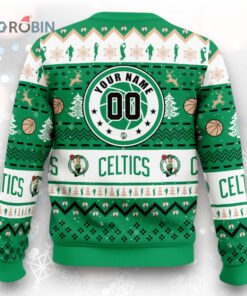 Imagine strolling into a holiday party, and seeing this vibrant design of holiday cheer and Celtics pride. With playful snowflakes, basketballs, and the iconic Celtics logo intertwined, it’s a celebration waiting to happen. This sweater is not just a piece of clothing; it’s a story of team spirit and festive fun. Get yours now and wear your Celtics pride with a festive twist!