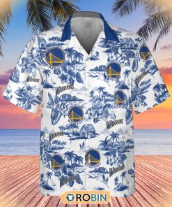 NBA Golden State Warriors Special Floral Island Hawaiian Button Shirt features