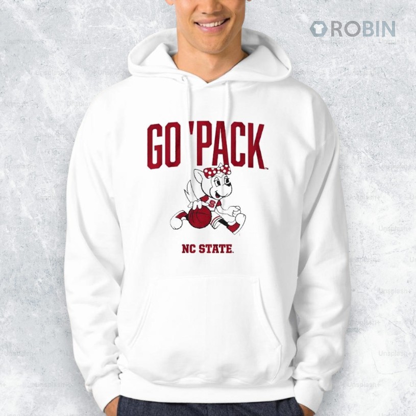 Show your Wolfpack pride with this unique Mrs. Wuf mascot court shirt! Perfect for game day or representing NC State wherever you go. Snag yours now and cheer on the Pack in style! 🐺❤️