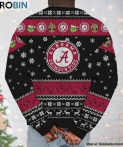 Get ready to turn heads this holiday season with a unique blend of geeky charm and festive flair! Imagine sporting an eye-catching sweatshirt that boasts both Baby Groot and the Grinch, two of pop culture's most beloved characters, decked out in Alabama Crimson Tide pride. This quirky and colorful holiday sweater not only celebrates your team spirit but also showcases your love for iconic characters. Whether you’re attending an ugly sweater party or cheering your team from the couch, this standout piece is sure to make you the center of attention.