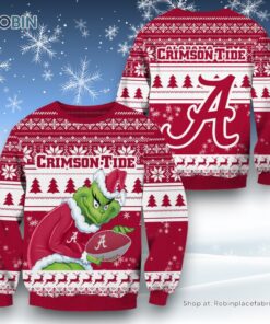 NCAA Alabama Crimson Tide Grinch Christmas Ugly Sweater and Sweatshirt details