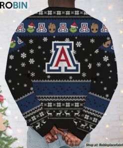 Get ready to infuse your holiday season with a burst of fun and fandom! Our exclusive sweatshirt and sweater feature the adorable Baby Groot paired with the mischievous Grinch, both decked out in Arizona Wildcats spirit. This unique, festive design is perfect for showing off your love for the Wildcats while spreading holiday cheer. Whether you're lounging at home, attending a holiday party, or cheering at a game, this cozy and eye-catching attire will make you the center of attention. Don't miss out on combining your favorite characters with your school pride in a truly unforgettable, ugly Christmas fashion statement!