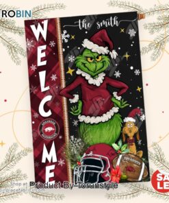 NCAA Arkansas Razorbacks Football Grinch Welcome Christmas Garden Flag Custom Name
