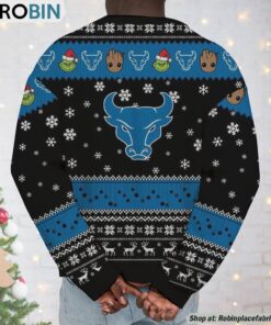 Get ready to dazzle this holiday season with a sweatshirt that blends festive fun and fandom like never before! Picture Baby Groot and the Grinch teaming up in the ultimate holiday duo, all while you root for the Buffalo Bulls. This uniquely styled, cozy ugly Christmas sweater is perfect for those who want to showcase their love for iconic characters and school spirit simultaneously. Don't miss out on making a bold statement at your next holiday gathering with this one-of-a-kind apparel masterpiece!