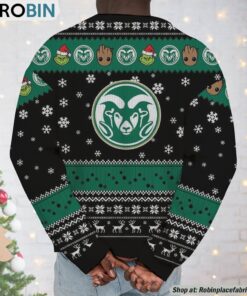 Step into the holiday spirit with a unique and charming twist on festive wear! Our latest sweatshirt and sweater bring together Baby Groot and the Grinch, celebrating their unexpected friendship in an eye-catching, delightfully ugly Christmas design. Whether you're an avid Colorado State Rams fan or just love quirky, beloved characters, this cozy piece is perfect for making a fun statement at holiday gatherings or simply enjoying the season in comfort and style. Don't miss out on owning a conversation starter that merges fandoms and festive cheer!