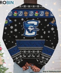Unleash your holiday spirit with the ultimate fan favorite! Show off your love for both the Creighton Bluejays and festive fun with a unique sweatshirt that features the iconic duo, Baby Groot and the Grinch, as best friends. Perfect for making a statement at any ugly Christmas sweater party, this cozy and stylish piece effortlessly combines team pride with holiday cheer. Whether you're lounging at home or cheering from the stands, this sweater promises to spread smiles and start conversations. Don't miss out on this limited-time festive apparel – it's the perfect gift for any true Bluejays fan!